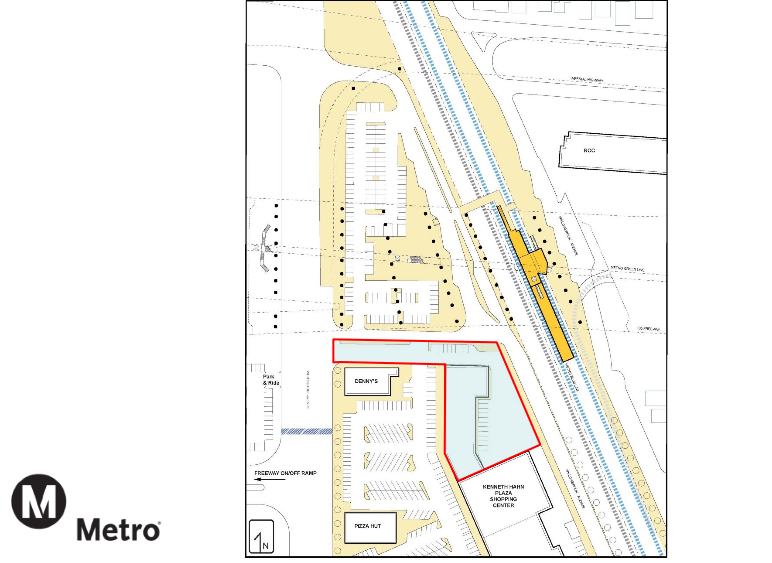 To create the expanded station, the project will require the acquisition of approximately a 1.5 acre section of the north end of KHP, currently owned by the Los Angeles County Community Development Commission (below). Existing tenants in that section — a nail salon, Planned Parenthood, and a dentist office — Metro believes, could be relocated to vacant storefronts within the shopping center.