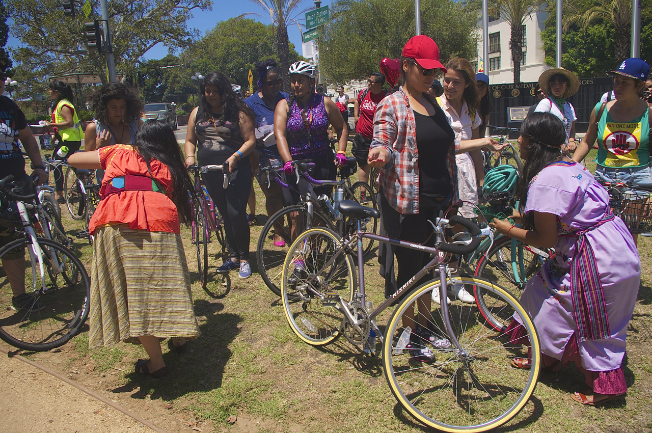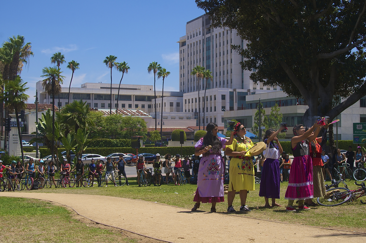 And for those things that could be not fixed by human hands, there was a blessing of the bicycles (and riders) and an honoring of the ancestors through sacred drum, prayer, and songs before the riders set out from Olvera Street (above).