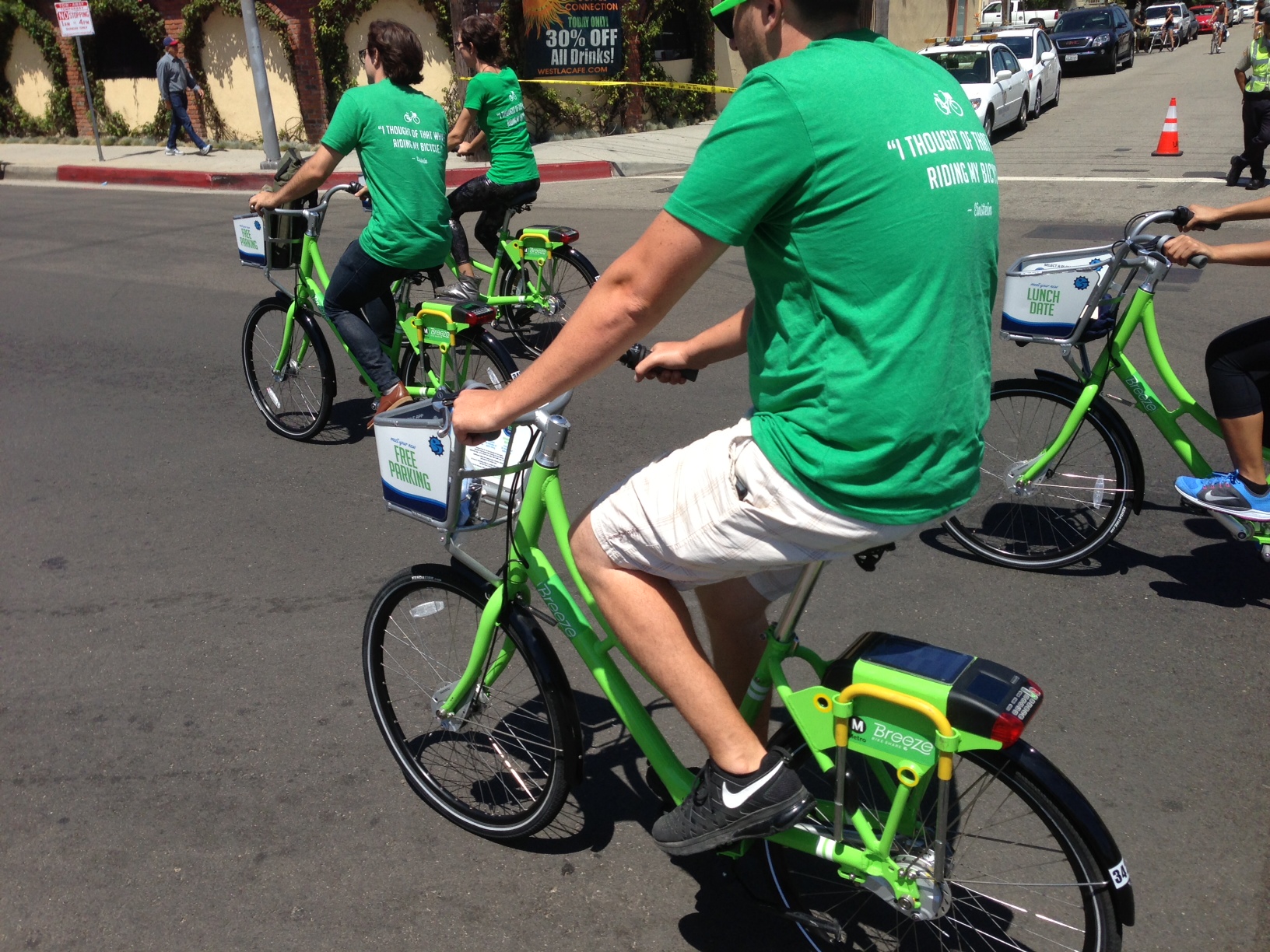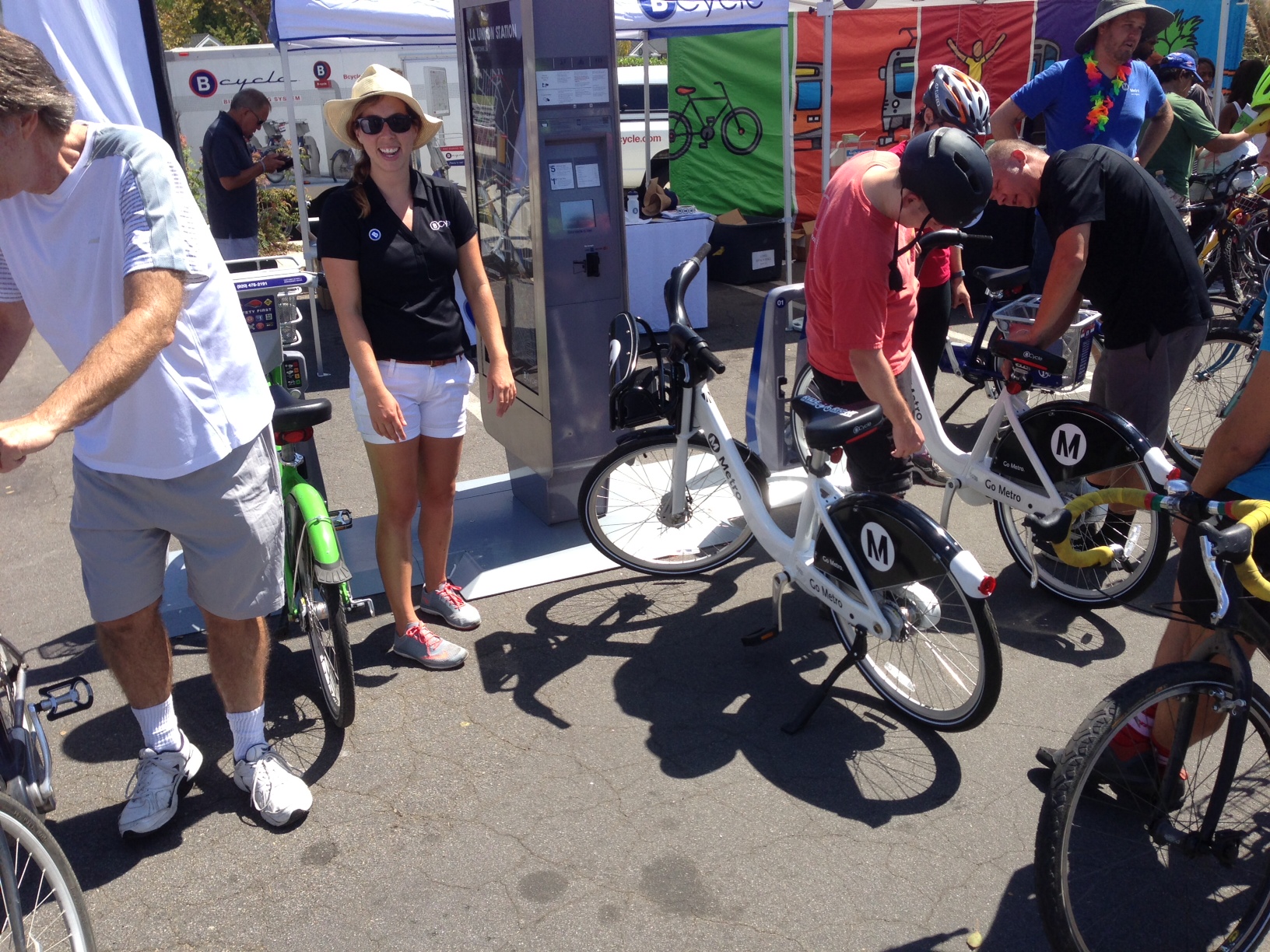 What was your favorite part of Southern California’s 14th CicLAvia? Shark and banana bikes? Little girls riding pink training-wheeled bikes? Impromptu front yard parties? Auto dealerships handing out fruit and water? Bike-share demos from coming-soon Metro and Santa Monica systems? Metro Board of Directors Chair and L.A. County Supervisor Mark Ridley-Thomas and fellow boardmember L.A. City Councilmember Mike Bonin taking bike-share demo bikes for a spin? Added: Supervisor Hilda Solis too! L.A. Great Streets pop-up parklet announcing protected bike lanes coming to Venice Boulevard?!? Hard-shell tacos? Live music? Farmers Market? LADWP tap water refill stations? Spotting something you never noticed before? Beautiful Angelenos of every shape, size, and age smiling in the streets together?