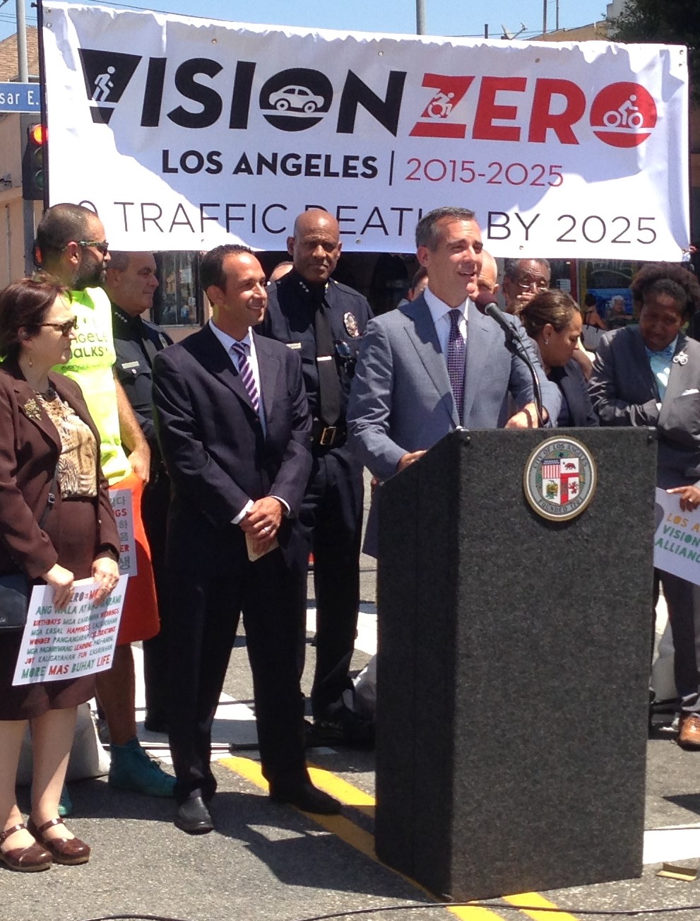 On one hand, you have Mayor Eric Garcetti and LADOT General Manager Seleta Reynolds out in the sun declaring a plan to reduce transportation related deaths to zero by 2025.