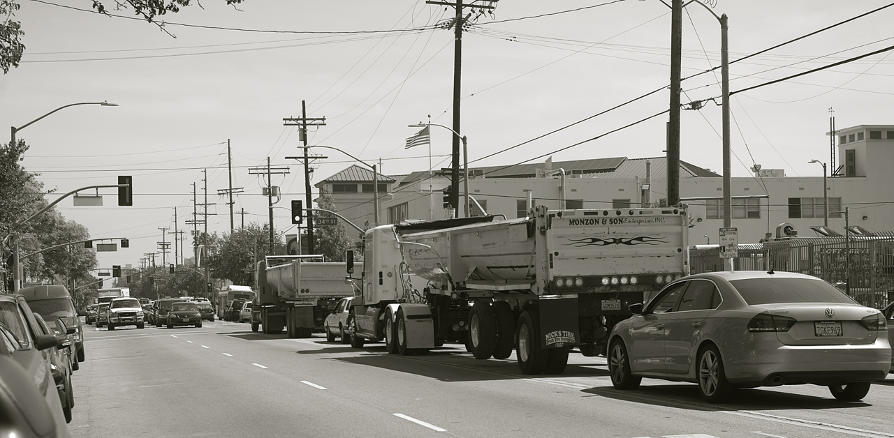 A very busy thoroughfare on the weekdays, Central connects the warehouses downtown to the 110 Freeway (via MLK Blvd.) and the 105 Freeway in Watts, and is popular with trucks looking to avoid the congested mess that is Alameda Street (which runs parallel to Central).