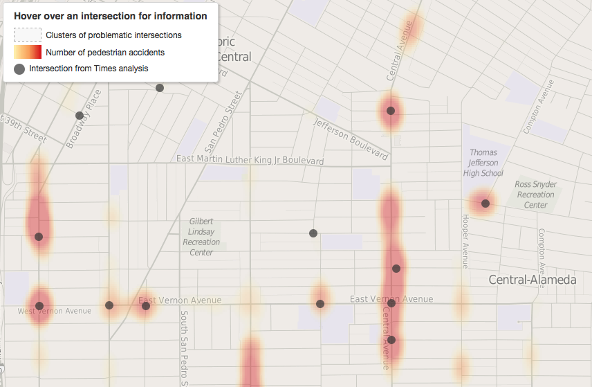 Officially, the poor conditions along the street have resulted in nearly 300 people being hit while walking or biking along Central over a ten-year span, according to the Los Angeles County Bicycle Coalition. But both cyclists and pedestrians along the corridor tell me close calls with vehicles are a far more regular occurrence. Many cyclists even report having been hit several times, despite never having communicated any of those incidents to the authorities. Their testimony suggests the underreporting of collisions stems from the incidents being hit-and-runs in which they weren’t badly injured, cases in which the driver stopped to render aid and/or offered to pay for any damages to the bike, or cases where it was clear to the victim that the driver was indigent and unable to pay for damages.