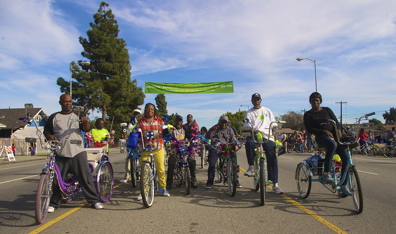 Events like CicLAvia, Baumann argues, give us a common point of reference from which to begin to rethink how our city should be designed. Experiencing safe, car-free streets firsthand, he says, can help skeptics imagine a more bike-centric future. Rubbing shoulders with the diverse mix of Angelenos seen at CicLAvia can also help to dispel the myth that cycling is the purview of well-to-do hipsters. And seeing the extent to which cyclists at open streets events outnumber those commuting on a daily basis might make it easier for skeptics to understand the role protective bike infrastructure can play in emboldening those who are currently too afraid to cycle L.A.’s mean streets.