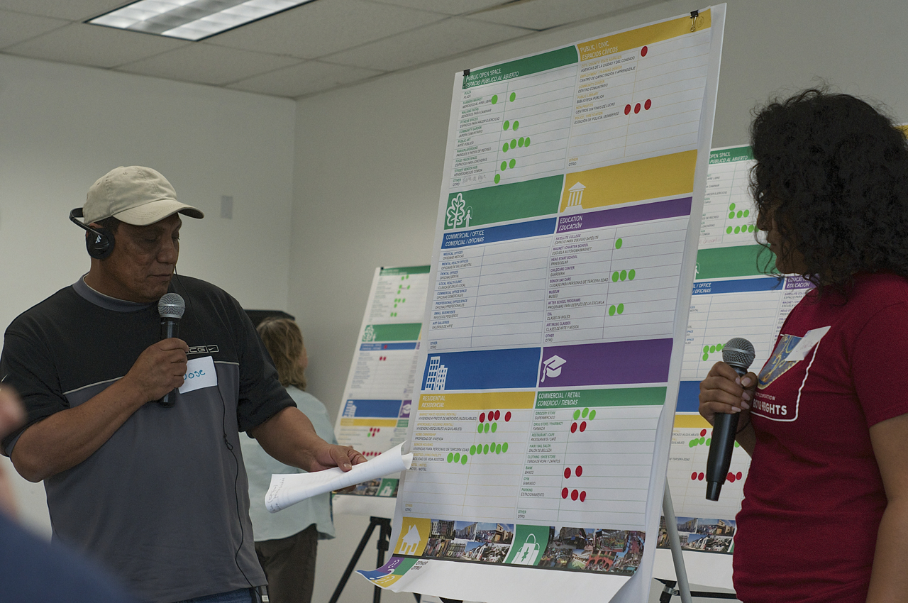 The approximately 60 stakeholders in attendance were interested in seeing everything from a cultural center to a mariachi museum to a children’s playground to a space for street vendors to assisted living for seniors to affordable housing to a grocery market to after-school programming for youth to an event hall at the site.