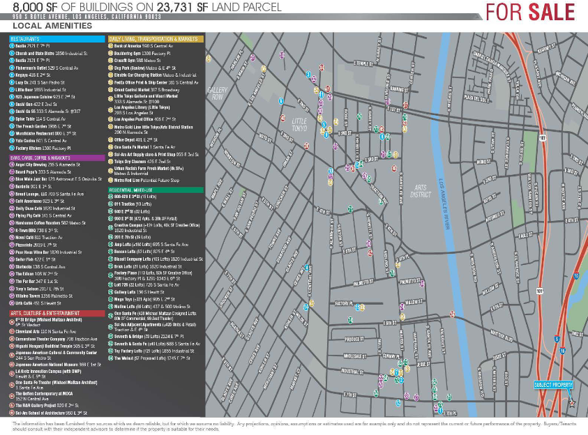 Even more troubling, for many, is that Boyle Heights tends to be marketed as being close to the amenities of downtown (below), with no acknowledgement of the rich arts, culture, or culinary traditions in the area itself. A brochure advertising the sale of a large site on Boyle Avenue last year actually cropped the bulk of Boyle Heights out of the map, choosing to highlight all the enticing culture, food, and fun across the river.