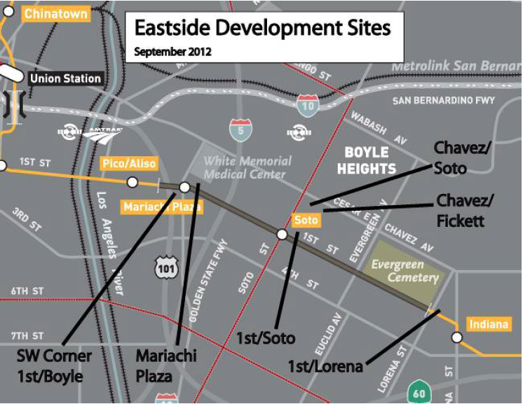 Part of the problem (to me, at least) seems to be that there are an awful lot of projects on the table right now relative to the geographic size of Boyle Heights. But there has been very little effort to engage the community, city agencies, and developers on how these projects all could work together.