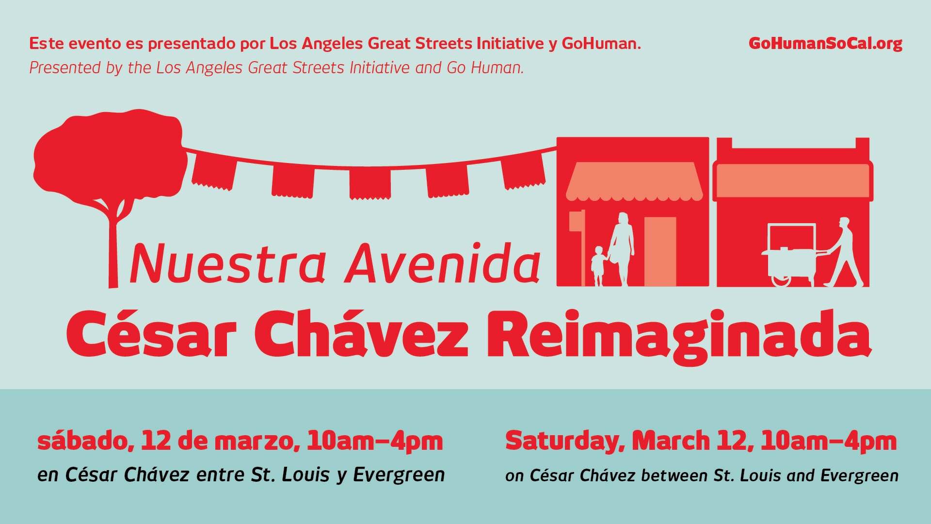 - Saturday 3/12 - Multicultural Communities for Mobility (MCM), From Lot to Spot (FLTS), and CALÓ YouthBuild Charter School with the Los Angeles Great Streets Initiative and Go Human host "Nuestra Avenida" where you can experience a vibrant Cesar Chavez Avenue that showcases Boyle Heights’ rich and diverse history, music, and art. Nuestra Avenida will transform the street, improving safety for pedestrians, bicyclists, transit riders, and drivers alike. Check it out from 10 a.m. to 4 p.m. on César E. Chávez Avenue between St Louis Street and Evergreen Avenue. More details at Facebook event or contact Carlos Velasquez of MCM at (323) 945-8149 or carlos [at] multicultimobility.org