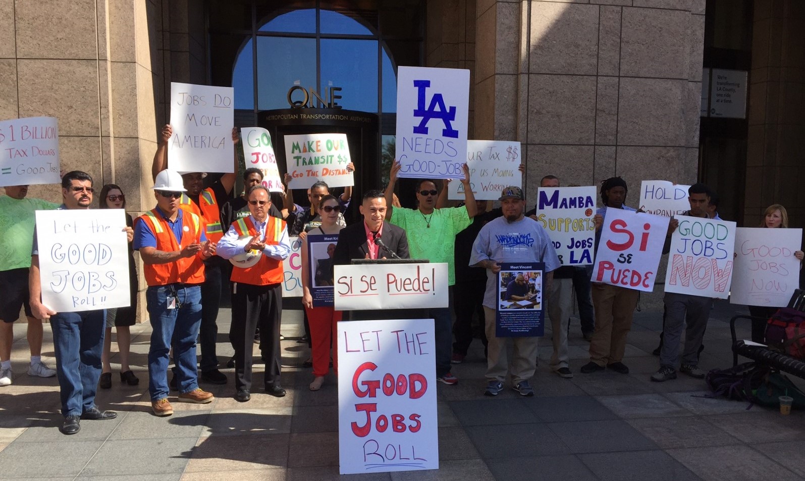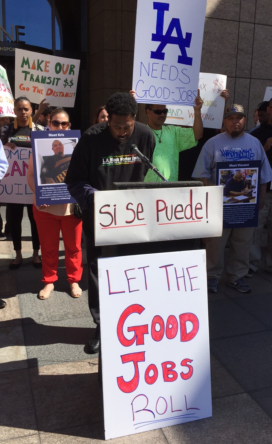 The national JMA coalition represents a broad range of organizations, including labor, civil rights, environmentalists, and others. Speakers at today’s event included representatives from the AFL-CIO, the L.A. Black Workers Center, Move L.A., Occidental College, and the Southern California Association of Governments.
