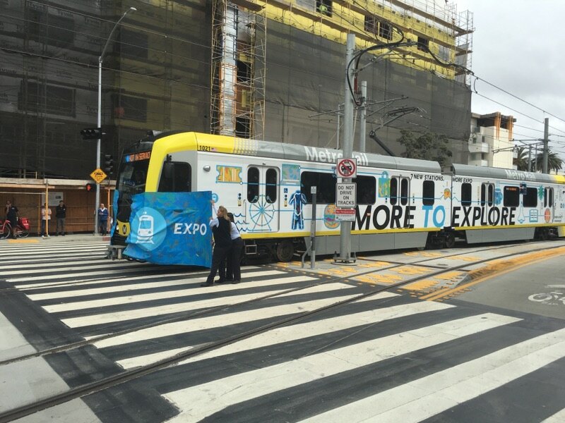 The day Los Angeles transit enthusiasts have been waiting for finally arrived this morning when the 6.6 mile extension of the Expo line opened, bringing passenger rail back to the westside of L.A. County for the first time since 1953.