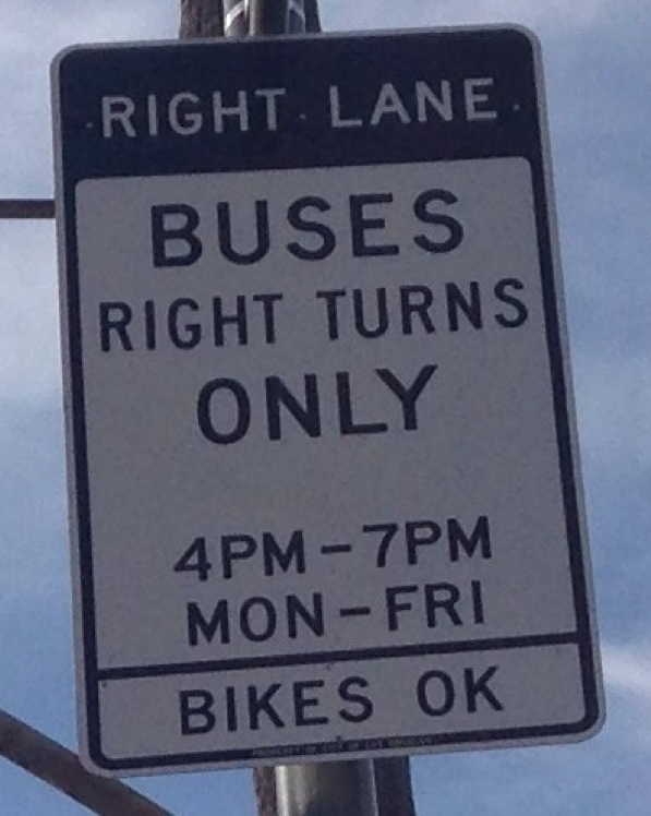 On bus-only lane signage in Los Angeles, there is a little two-word section at the bottom that reads, “BIKES OK.”