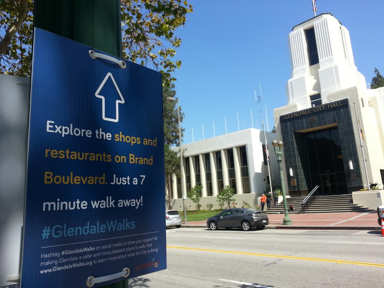 Outreach for the campaign includes the signs, a social media campaign and outreach through traditional venues. Interestingly, the signs include information not just on how to be involved in the plan, but an invitation to join the conversation online by posting with the hastag #GlendaleWalks.