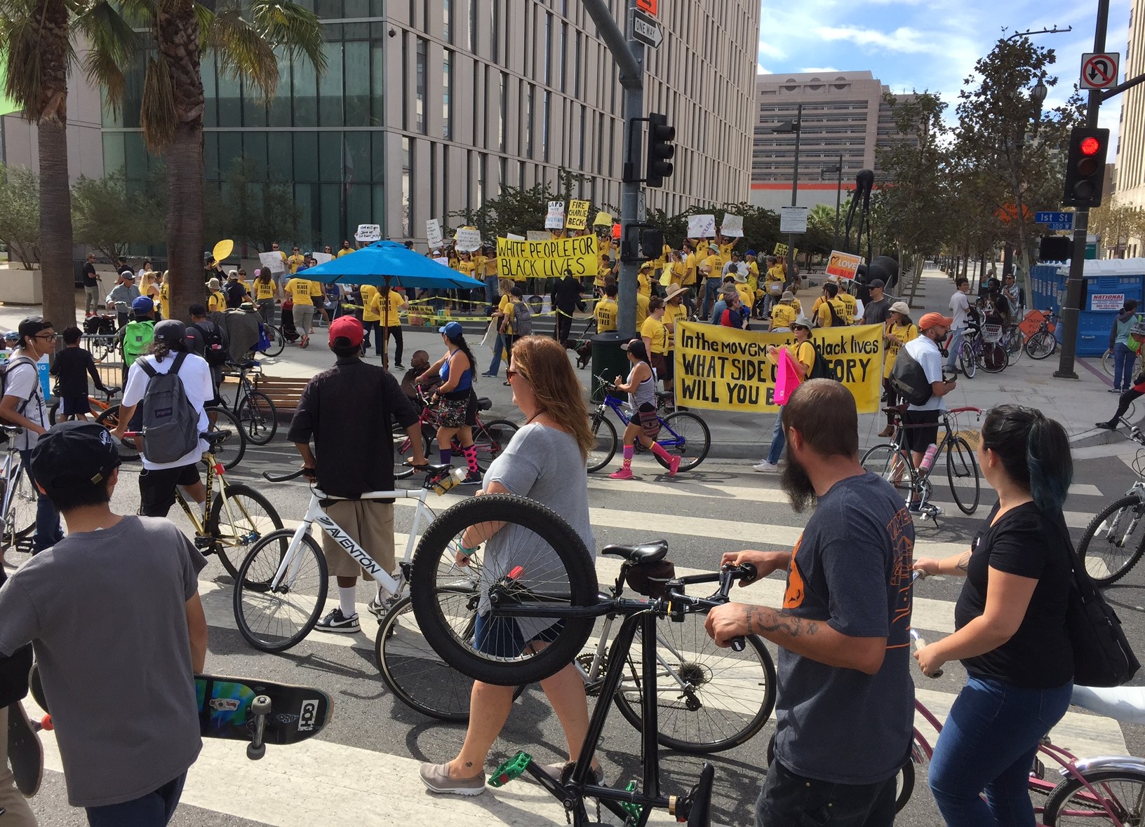 White people for Black Lives march rallies at LAPD headquarters during CicLAvia yesterday
