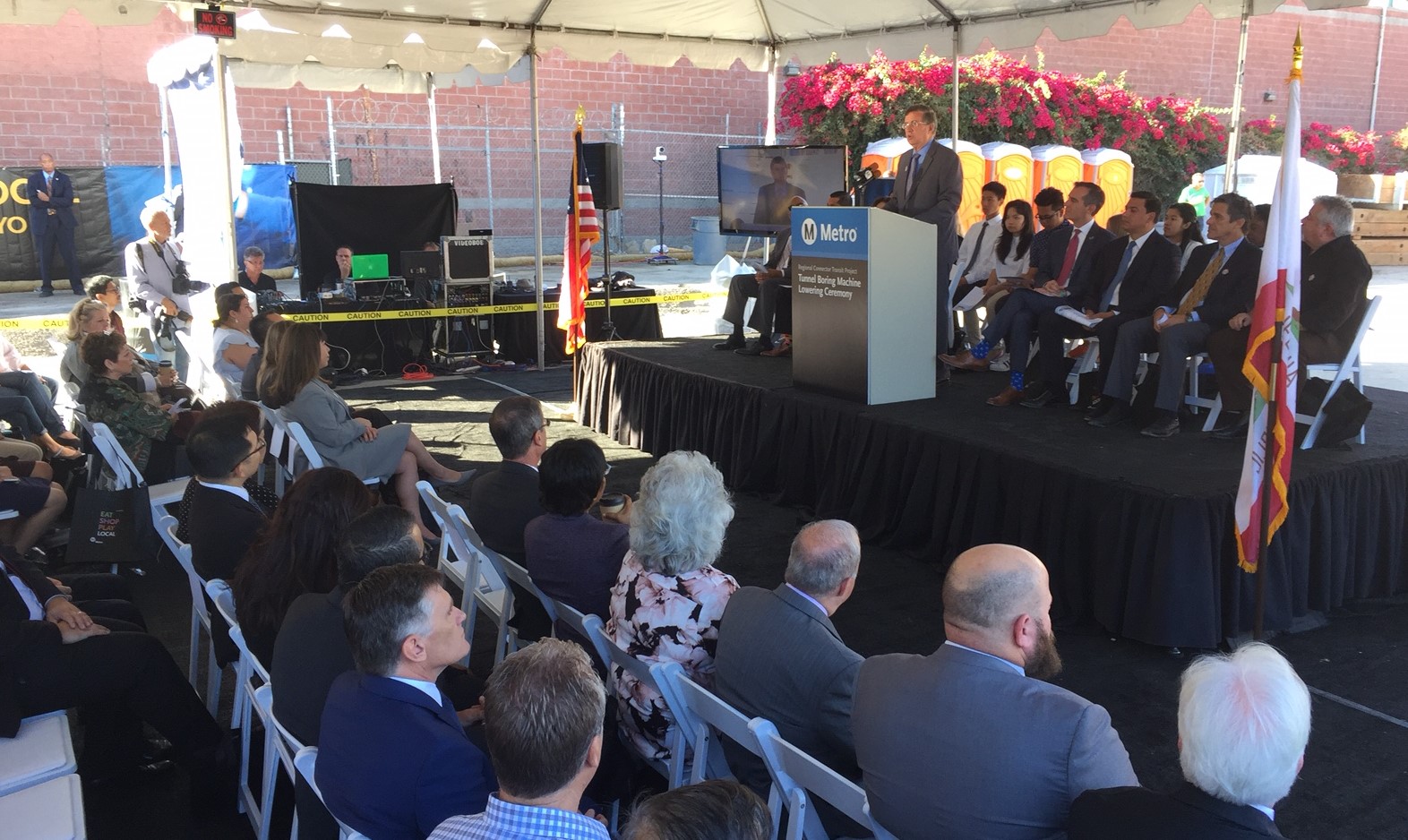 McInerny was joined by a bevvy of transportation leaders excited about the progress that Angeli represents. Metro board chair John Fasana acted as master of ceremonies. City of Los Angeles Mayor Eric Garcetti received the best laughs of the morning’s proceedings by noticing the “great turnout for such a boring event.”