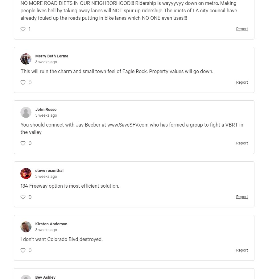 Some of the backlash was in evidence last month, when BRT opponents shouted down Metro staff attempting to present BRT information at an Eagle Rock Neighborhood Council committee meeting.