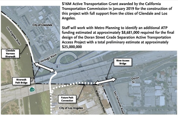 The Doran grade separation is complicated by its proximity the Los Angeles River and the Verdugo Wash. The city of Los Angeles’ river plans call for bike- and walk-friendly revitalization of the area immediately downstream from the Verdugo confluence.