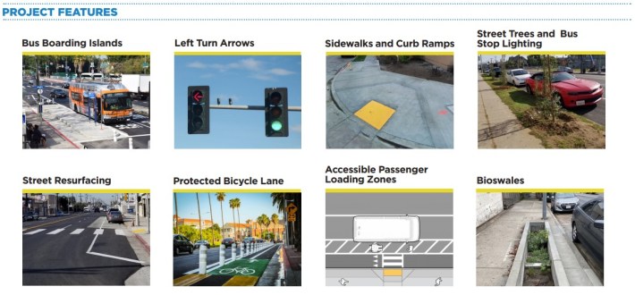 Reseda Boulevard is about to get a new look. The city of L.A. Reseda Boulevard Complete Streets Project will feature new trees, bus boarding islands, bioswales, lighting, repaired sidewalks, resurfaced street, and a continuous protected bike lane. Project champion L.A. City Councilmember Bob Blumenfield emphasizes that the improvements “will make Reseda Blvd. safer and more accessible for all Angelenos, whether they are taking transit, driving, walking or biking.”