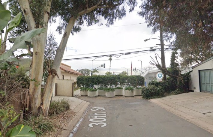 And if you thought that these sorts of closures are only in the city of L.A., here’s an example in Manhattan Beach. Potted trees block nearby Sepulveda Boulevard commercial traffic from heading down residential 30th Street.