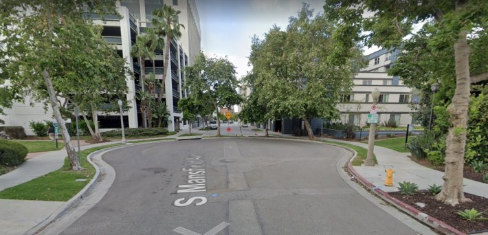 In Brookside, Mansfield Avenue is blocked off to keep Wilshire Boulevard office traffic from heading north.