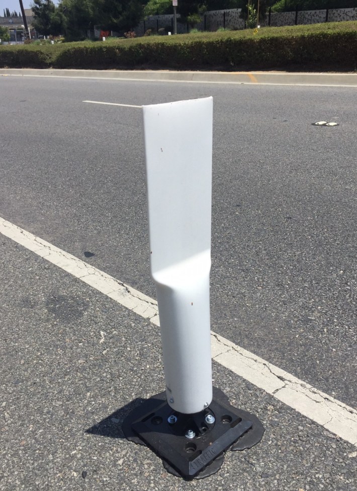 The Workman Mill Road protected bike lanes extend about 0.4-mile from Oakman Drive to Alanwood Road. LACDWP added new protection to existing bike lanes.