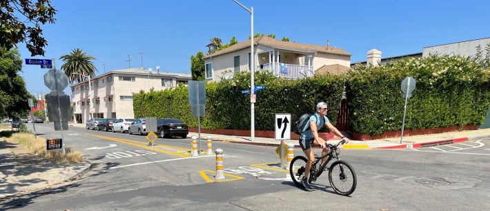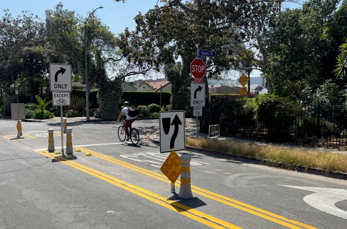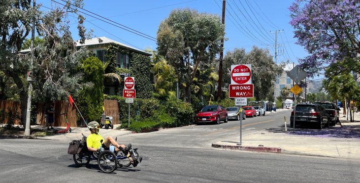 The cities of West Hollywood and Los Angeles have collaborated on a pilot project to make Willoughby Avenue safer for people walking and bicycling. While the pilot is a decent step in a healthy livable direction, its effectiveness has been undermined by scofflaw drivers.