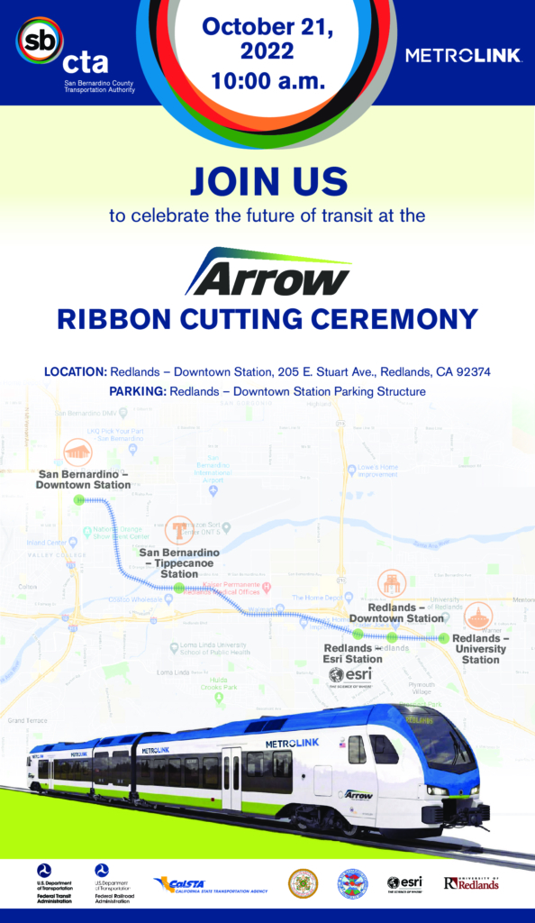 Thursday 10/20 – The Parking Reform Network is convening a fundraiser house party to celebrate the passage of A.B. 2097 (which ended parking requirements near quality transit stations/stops), featuring special guest Donald Shoup. The event takes place at 7 p.m. in Larchmont Village, address provided on RSVP. Details at Parking Reform Network event page.- Friday 10/21 – The San Bernardino County Transportation Authority (SBCTA) and Metrolink will host a ribbon cutting for the new Arrow train service in Redlands. Arrow, operated by Metrolink, will serve five new stations: San Bernardino – Downtown, San Bernardino – Tippecanoe, Redlands – Esri, Redlands – Downtown, and Redlands – University. The festivities start at 10 a.m. at the historic Redlands – Downtown Station. The new rail service starts on Monday 10/24. Details at SBCTA Arrow webpage.