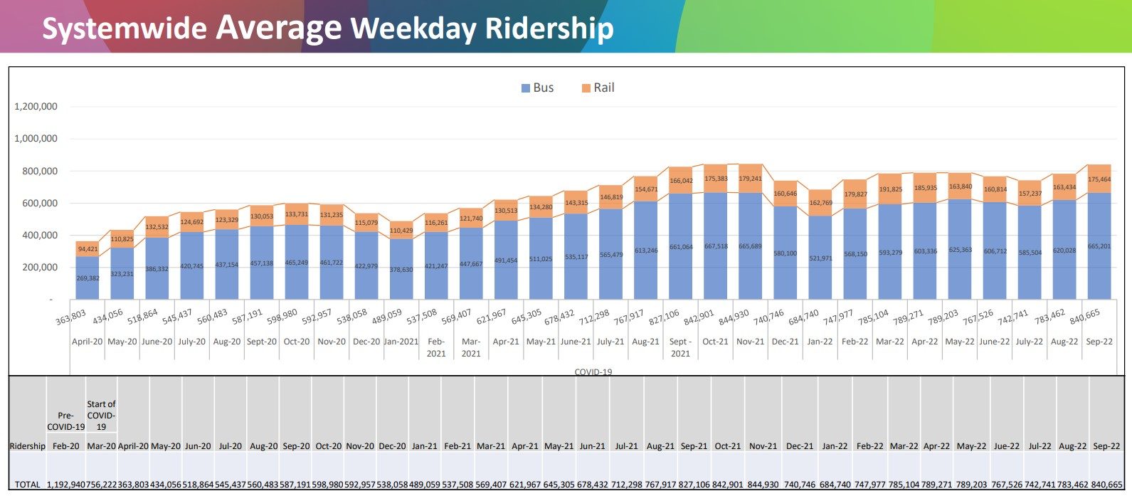 Since July, Metro average weekday ridership rose from 743,000 to 841,000. Today overall ridership is at 70 percent of what it was in 2019.