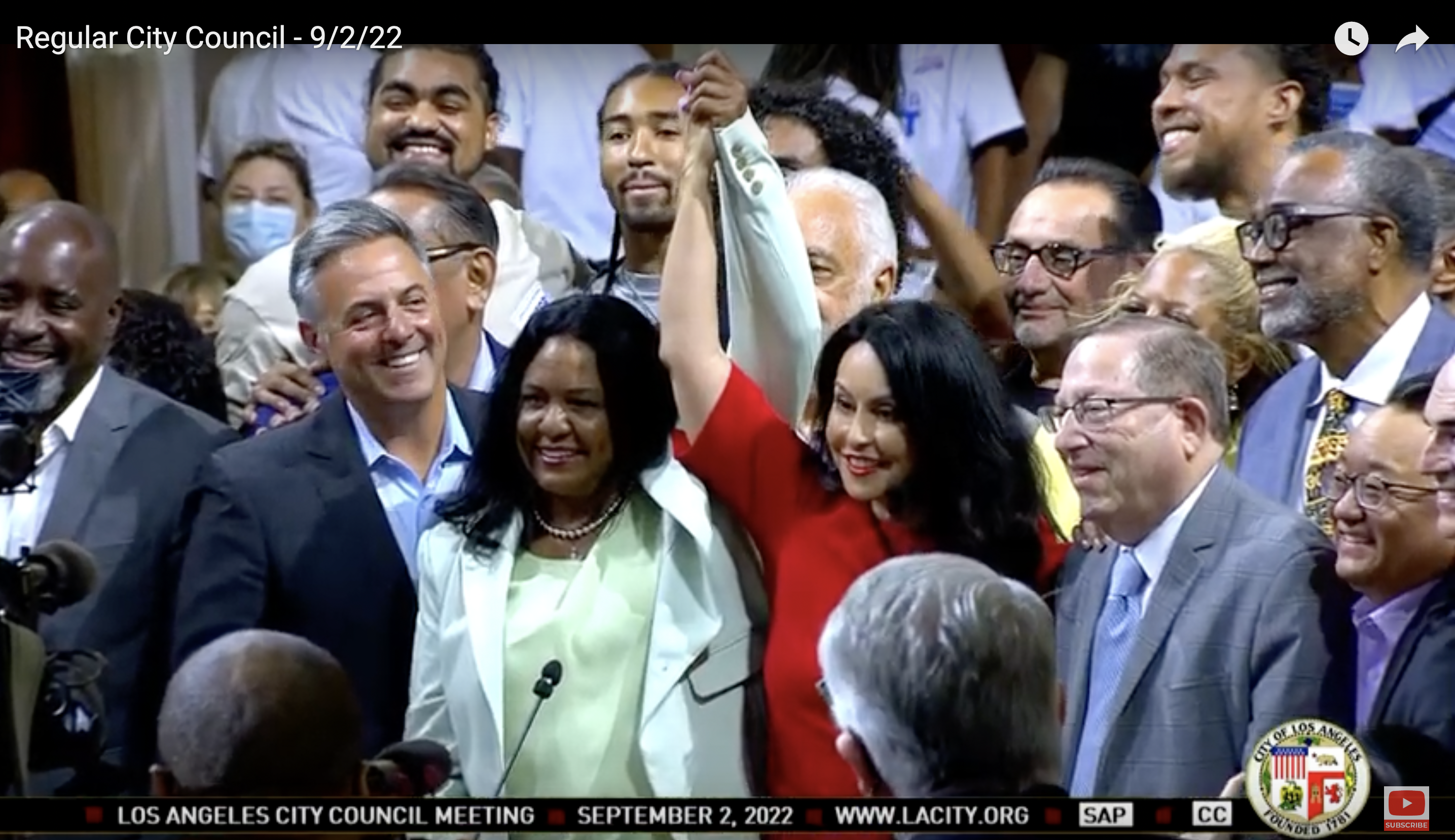 The absence of councilmembers Nithya Raman and Marqueece Harris-Dawson – both of whom had been disparaged at length on the recording – hinted otherwise. Earlier in the day, Spectrum News’ Kate Cagle had captured them engaging Black and Latino community leaders as the other electeds kept their distance from the raucous crowd.