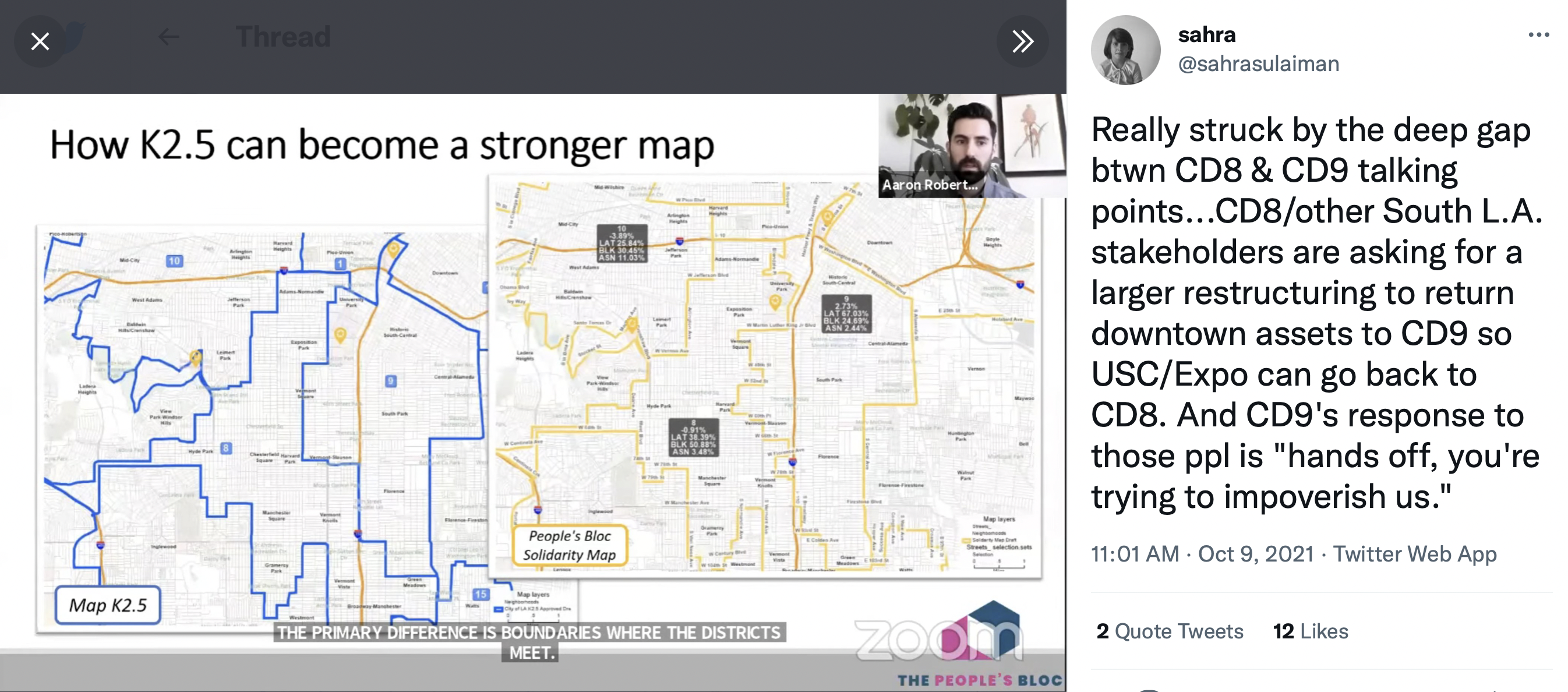 It might not have been so noticeable if the barrage of coordinated comments to the redistricting commission hadn’t had such aggressively resentful scripts. But the arguments, language, hostility, anti-Blackness, and specific targeting of Harris-Dawson, CoCo, and Karen Bass closely paralleled the recording and set them apart from genuine constituent concerns (e.g. what a loss of assets might mean for hard-won community benefits agreements).
