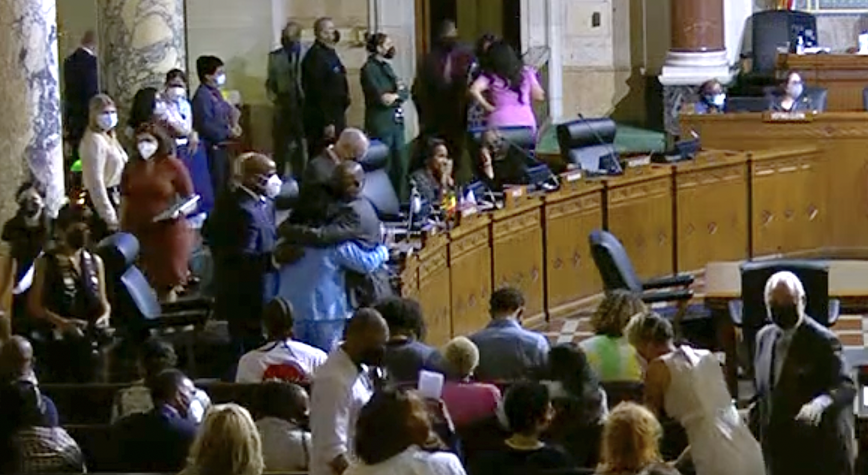 “Felicidades,” he concluded, turning to praise the “mosaic, the rich tapestry of people of color” present in chambers. “We’ve got Latinos here. We got Salvadoreans here. We got Mexicans here. We got African Americans here. We got Koreans here…Because our diversity is our strength when we come together.”
