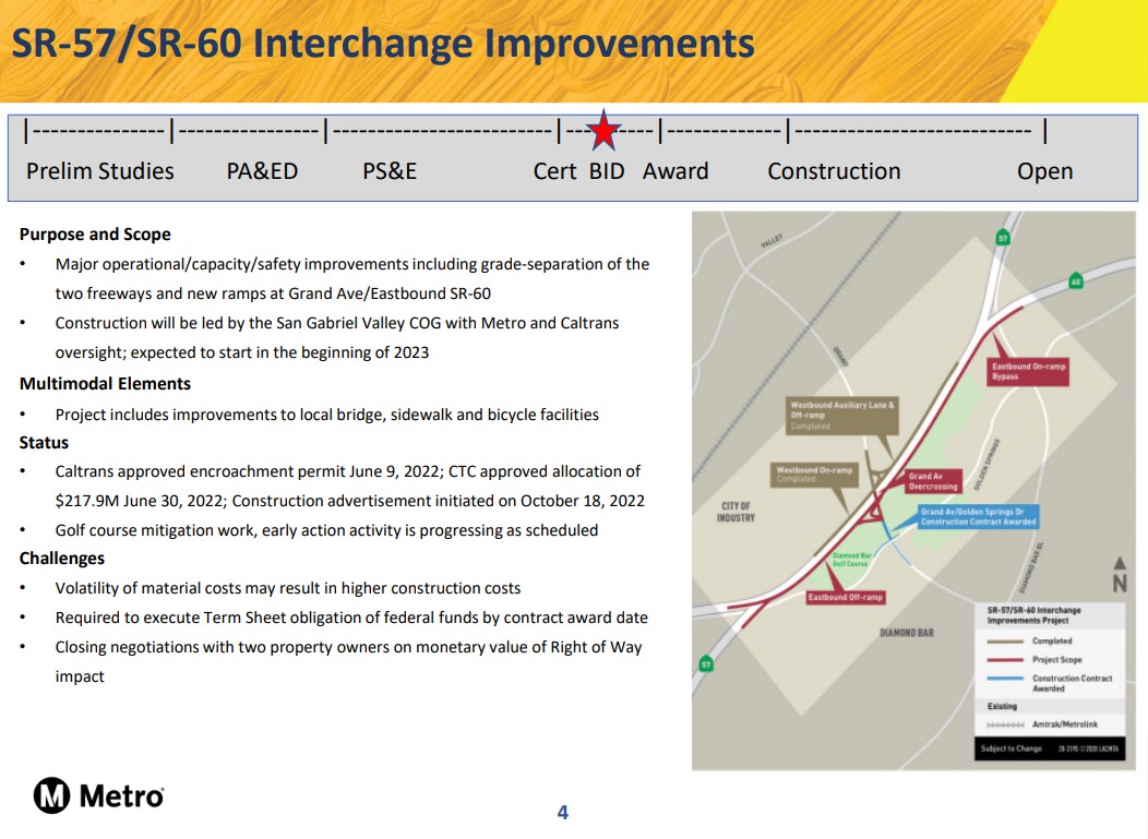 - add new flyover on- and off-ramps, including a new offramp through L.A. County’s Diamond Bar Golf Course.