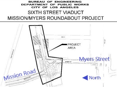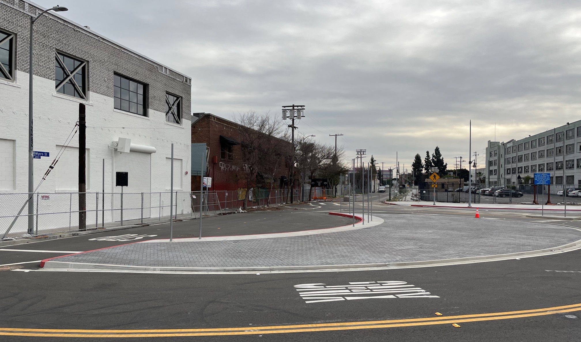 And here is one other brief downtown street project update. Back in 2021, Streetsblog reported on a new Boyle Heights bike path located just south of the then under-construction Sixth Street Viaduct. The city later closed much of that path to finish work on the Mission/Myers Roundabout project, one of a handful of projects connected to the new bridge. These projects include the new under-bridge park, where construction is slated to get underway soon.