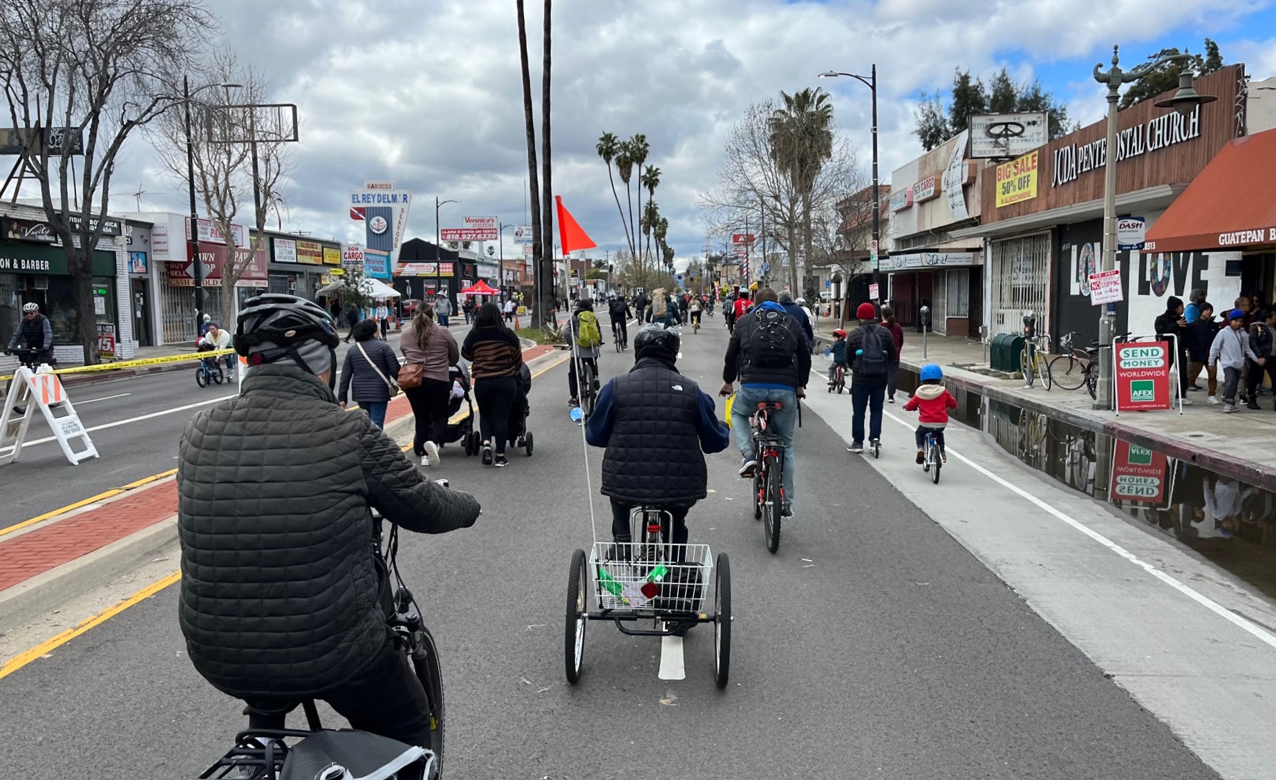 Southern California’s popular open streets festival CicLAvia touched down in the West San Fernando Valley yesterday. Through the L.A. City communities of Reseda, Canoga Park, and Winnetka, , four miles of Sherman Way were closed to cars and open to people on foot, bike, scooter, skate, wheelchair, and more.