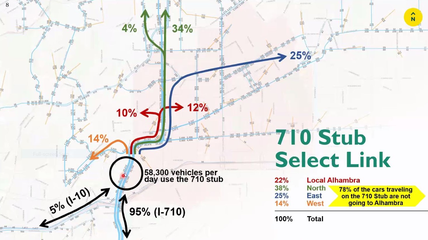 - Ending the 710 at the 10 (closing the stub area to cars) would increase street traffic throughout Alhambra, Monterey Park, and in adjacent Los Angeles.