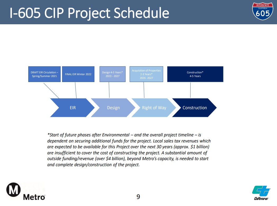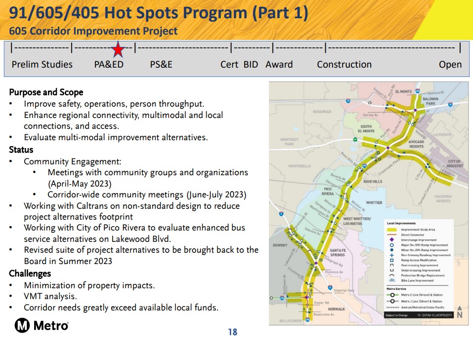 For the larger overall 605CIP, Metro is restarting its community engagement process. The most recent rounds of Metro/Caltrans community meetings on the project were in 2016 and 2018.