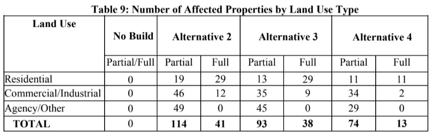 Back in 2015, for just the north part of the 605CIP, Metro and Caltrans’s affected property totals show 11-29 residential full demolitions, plus another 2-12 commercial/industrial full demolitions, totaling 13-41 full acquisitions.