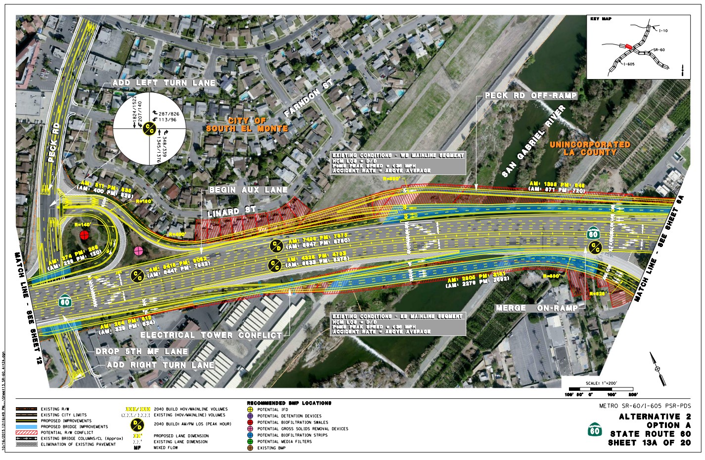 Metro and Caltrans are proceeding with three relatively small scale ramp and street widenings (termed 605 Freeway “Hot Spots”) that set the stage for later major 605CIP widening. These early action projects include: