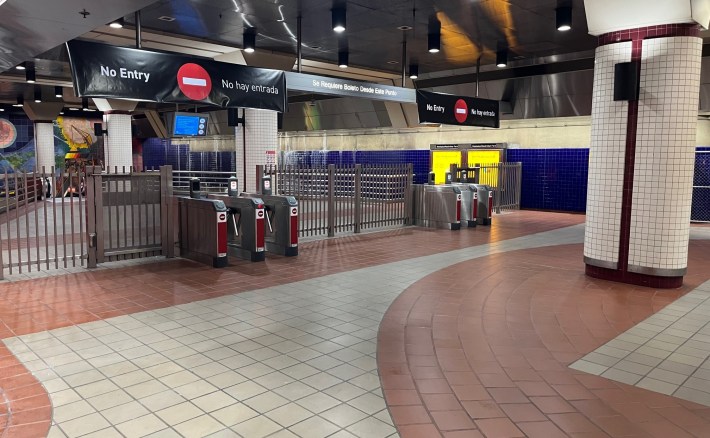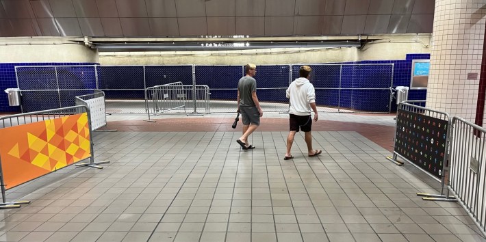 Metro has been piloting interventions to make riders “safer” at its MacArthur Park B/D Lines subway station. Earlier this year, Metro added uncomfortably loud music, more policing, ambassadors, brighter lighting, and closed off a station entrance. There’s another feature recently added: metal barricades, reminiscent of a cattle chute.
