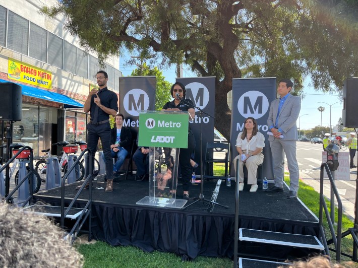 L.A. Councilmember and Metro Boardmember Katy Young Yaroslavsky (who took office during the Venice project construction) enthusiastically celebrated the project as “a really big deal.” Drawing attention to the corridor’s history of car crashes resulting in fatalities and serious injuries, Yaroslavsky noted it would “save lives” and expressed her support for L.A. becoming “a great bike city.”