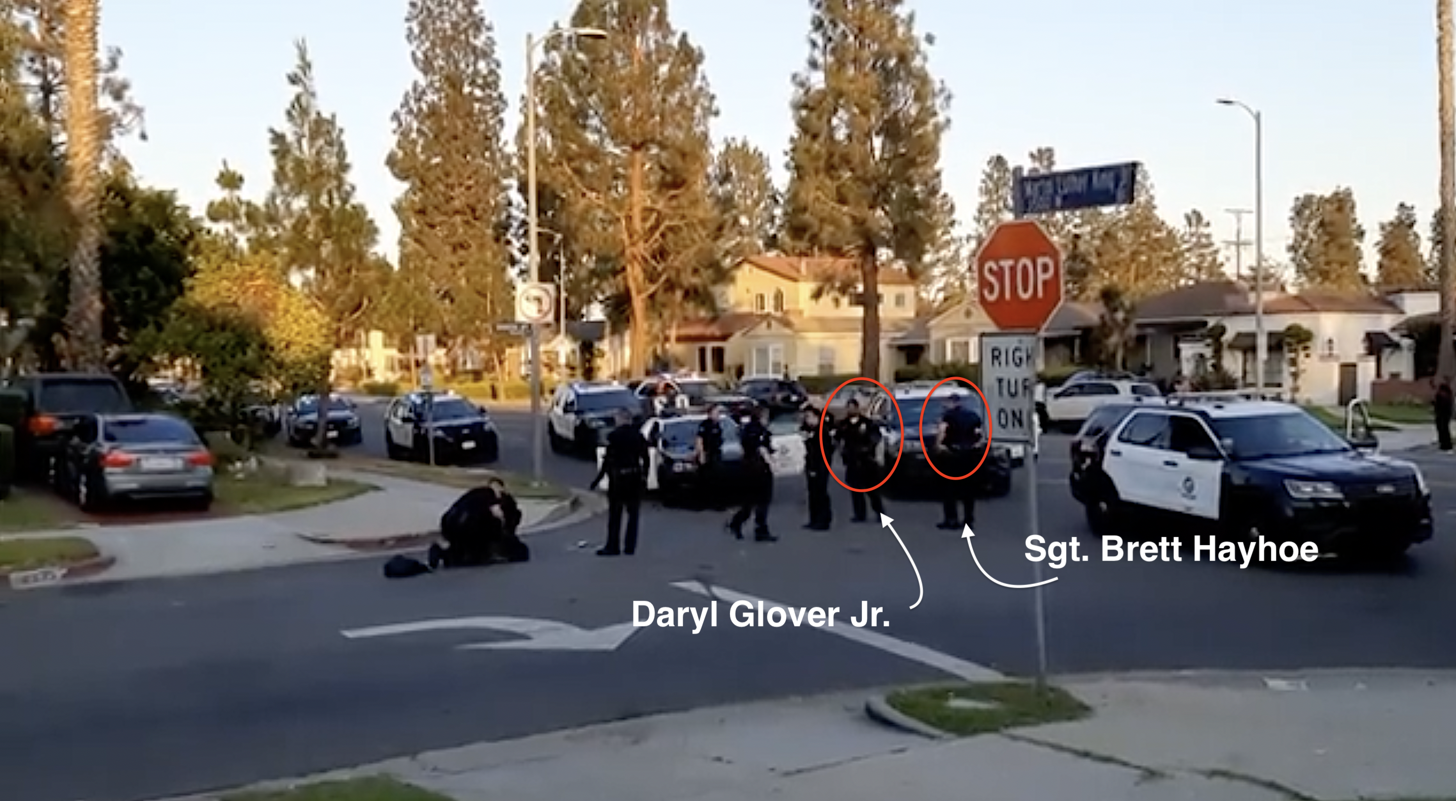 On July 18, 2022, Hayhoe had pulled up alongside an unarmed 39-year-old Black veteran with severe mental illness and – while continuing to steer his patrol vehicle with one hand – pointed a gun out the passenger side window, squeezed off two rounds as the man ran from him, and managed to spark contagious fire from officer Daryl Glover Jr., who, along with officer Nelson Martinez, had been trailing behind the man on foot. That man, Jermaine Petit, had been struck in his left shoulder and jaw (per LAPD) and broken his jaw when he fell to the ground (per the lawsuit filed on Petit’s behalf). Petit thankfully survived the encounter.