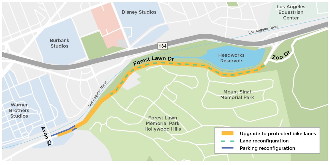 Streetsblog L.A. has repeatedly called for a safe protected bikeway on Forest Lawn, which should ideally continue into and through Griffith Park, which lacks all-ages bikeways, especially in flat areas where families ride together.