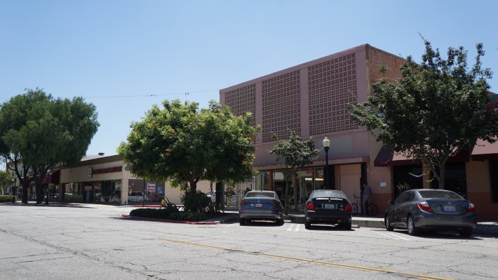 Though the retail strip got its start decades before, Main’s current street configuration was laid out in 1965 when the city created the “El Monte Valley Mall” by rerouting Valley Boulevard to the north, where it lies today. The short retail street, then renamed Valley Mall, was essentially a drive-through mall.