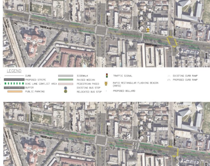 Valley would also receive additional and upgraded higher visibility crosswalks and, in some locations, bulb-outs to shorten crossings.