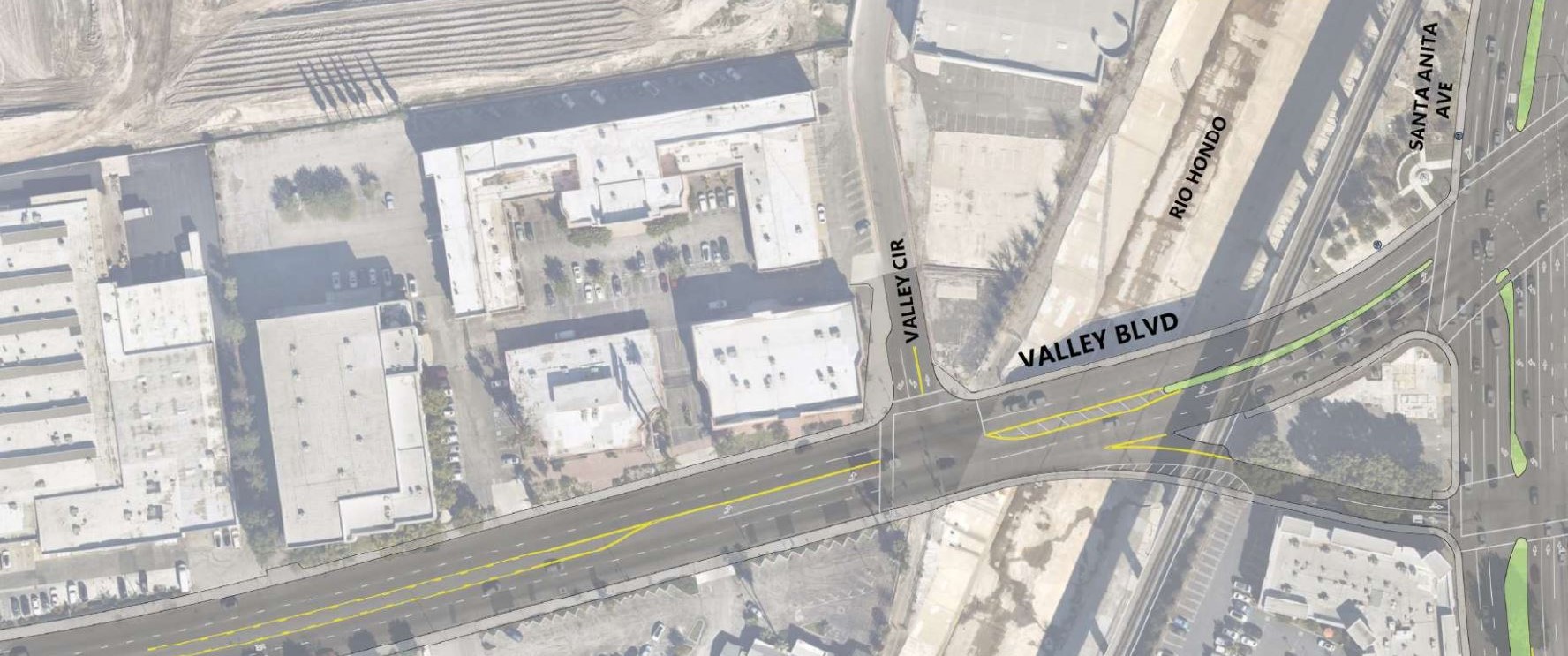 Both Valley and Main are located near the El Monte Bus Station, the El Monte Metrolink Station, and the Rio Hondo river bike/walk path. Though plenty of people walk there, the current street designs cater to drivers.