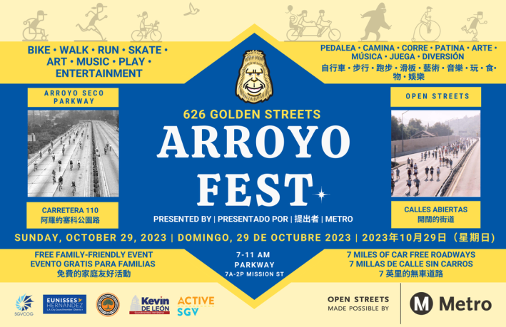 This week’s SGV Connect breaks our regular mold as Streetsblog L.A. editor Joe Linton conducts both interviews on the past and future of ArroyoFest which returns at the end of this month. On Sunday October 29 a portion of the 110 Freeway – also called the Arroyo Seco Parkway – will be closed to cars and open to runners, cyclists, pedestrians, skaters, and for other human-scale activity. The event will take place on the 110 from South Pasadena to Lincoln Height/Cypress Park, just north of Dodgers Stadium.
