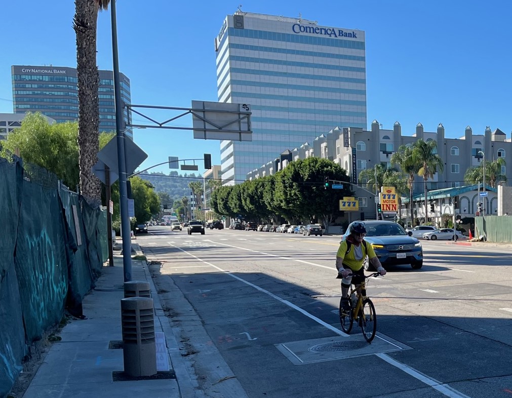 Cyclist using the Sepulveda Boulevard bus/bike lane