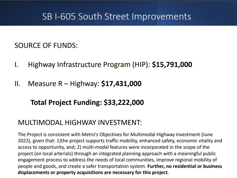 Yesterday, the Metro board Construction Committee approved $174 million for widening the 91 Freeway in North Long Beach, and $33 million for widening a 605 Freeway ramp in Cerritos.