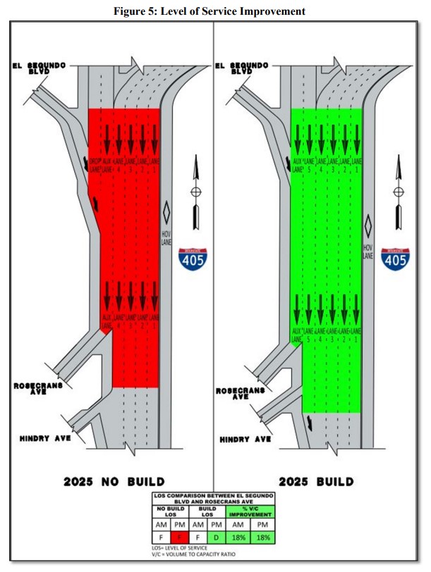 Caltrans/Metro titled the project “Interstate 405 Auxiliary Lanes Improvement Project” and break the five miles up into seven short segments, each short of one mile long.