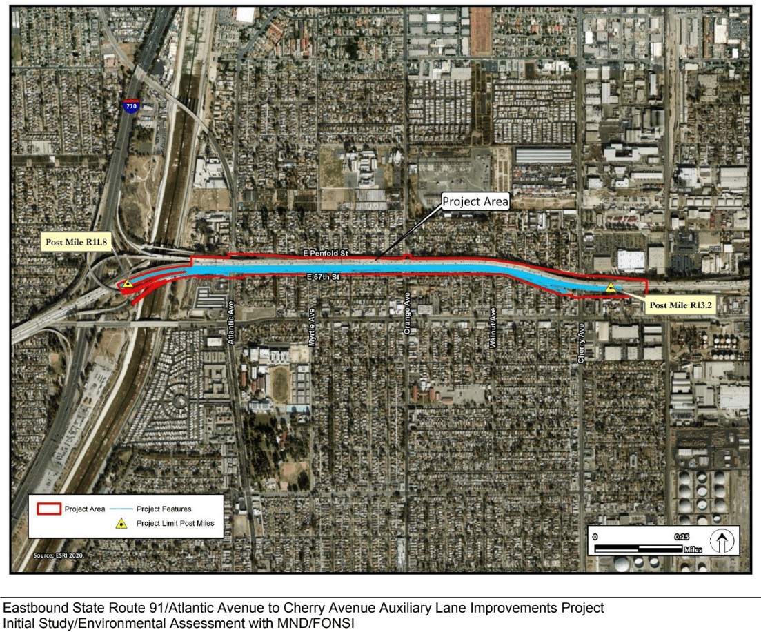 Metro is spending more than $220 million to add one more eastbound lane for about one mile of the 91 Freeway in North Long Beach. Metro calls the project “Atlantic Avenue to Cherry Avenue Auxiliary Lane Improvements,” but it is neither. It’s not just an aux lane. And about a quarter of the project is not located between those ramps.