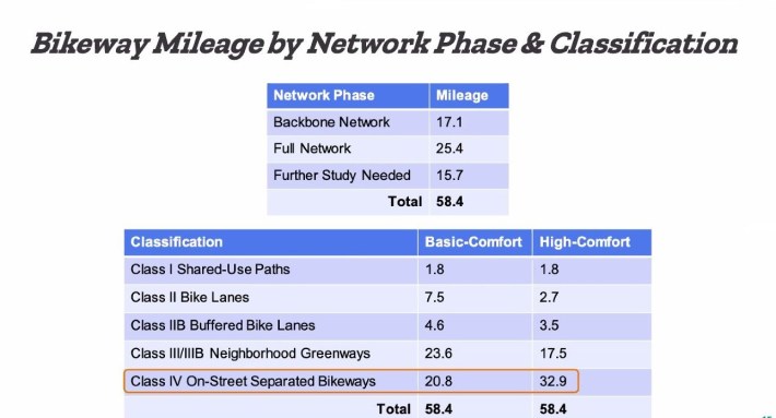 (Notable changes to the plan mentioned at Monday’s meeting include upping the proposed bike lane mileage to 58 miles, and a lowered cost estimate for the Pedestrian Priority zones from $19.6 million down to $14.9 million.)