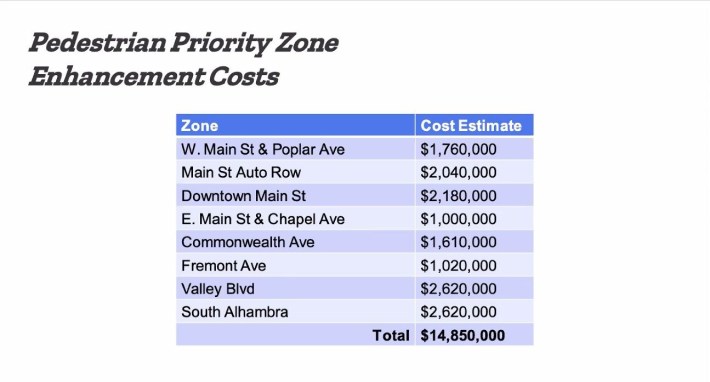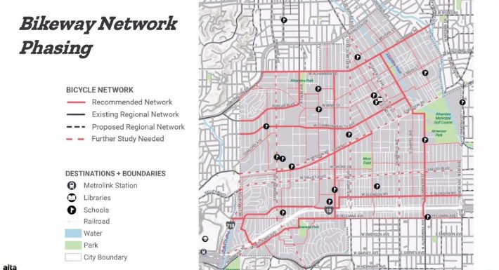 But residents were also concerned about funding for facilities in the plan. At the moment, there is no money earmarked for implementation. The city had applied for Metro funding before, but was turned down. It now hopes Metro will approve transferring $14.4 million from the abandoned Fremont Avenue widening project (from Mission Road to Valley Boulevard) to the bike/ped plan.